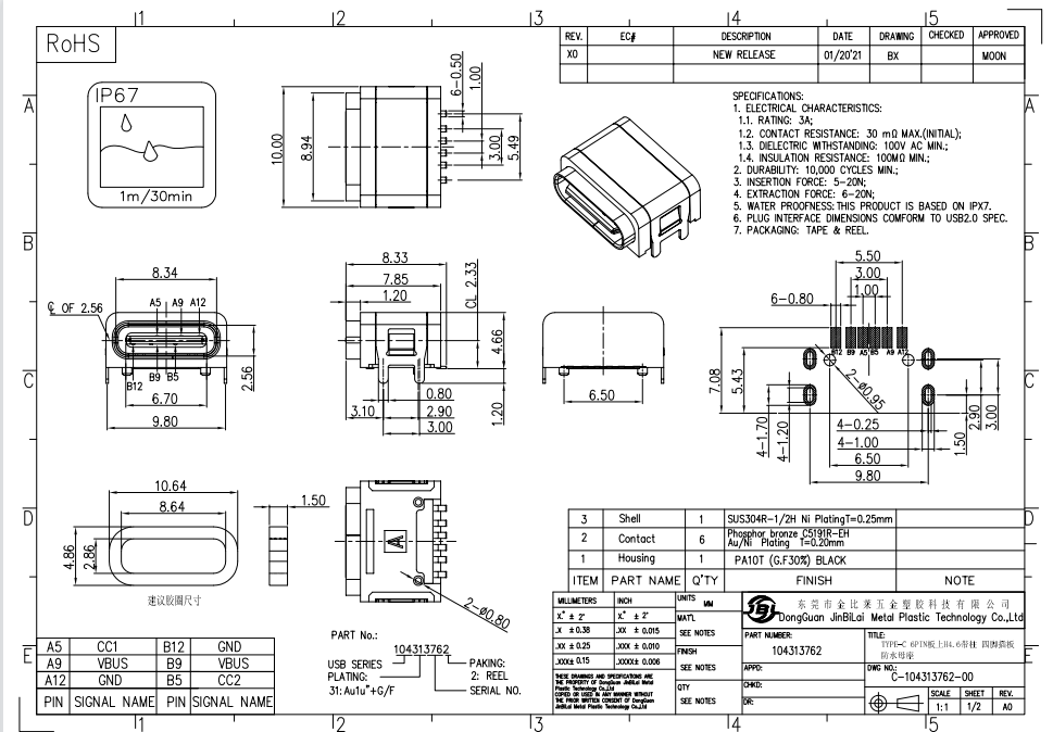 104313762-TYPE-C防水母座 6P板上H4.6