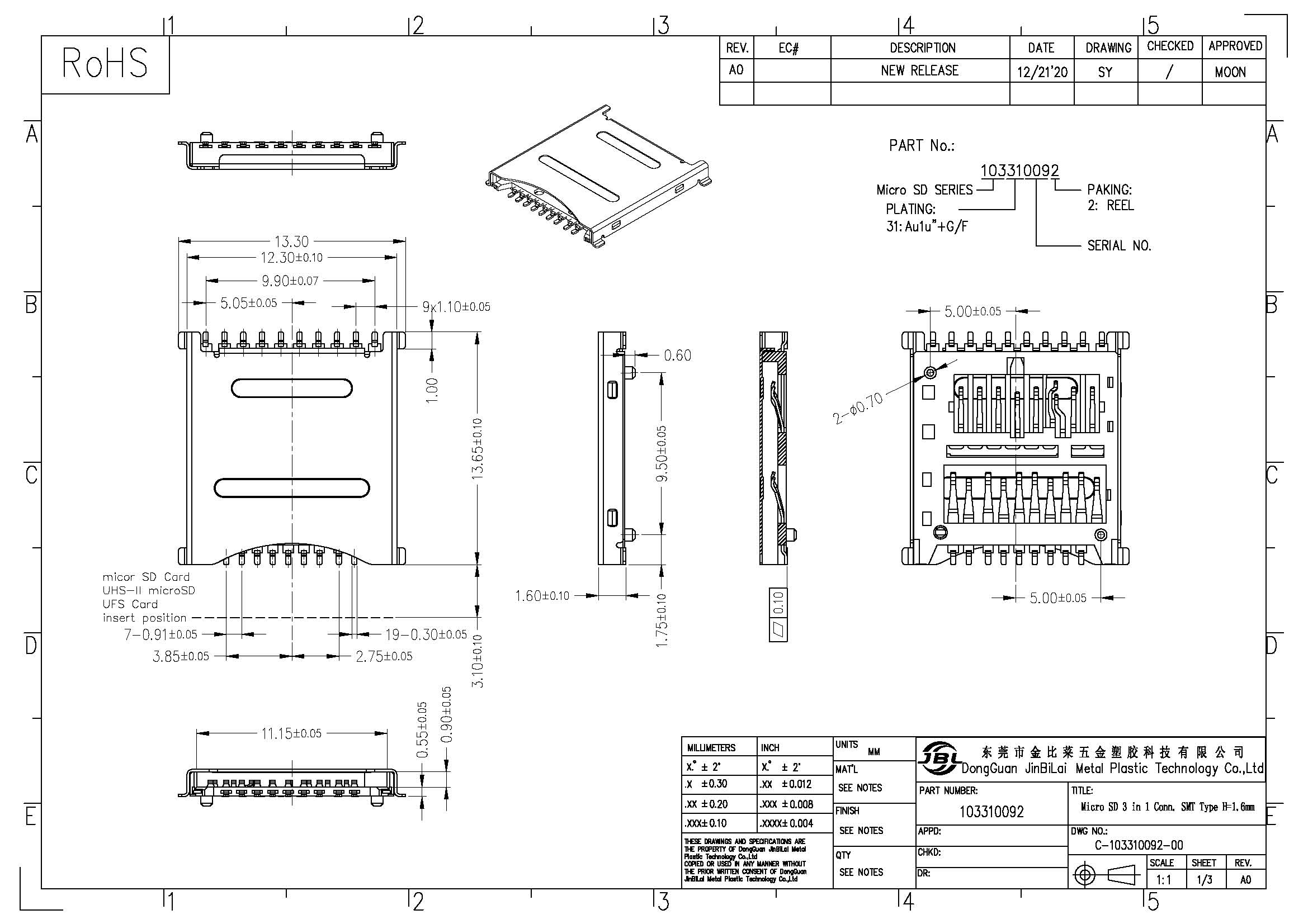103310092-MICRO SD 三合一 H=1.6mm Conn. SMT Type
